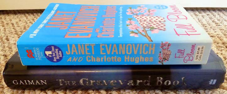 The sale today was $3/bag, which is still a great deal, but "pricey" enough that we don't get as many people driving in from places like North Carolina (yes, really!) to buy whatever books they can grab to re-sell on Amazon.com. While there were a fair number of people at the sale, the pushing & shoving was at a minimum, and there weren't many "take every book on the shelf" types, which enabled all the customers to take more time and care in our selections. I managed to cram a total of 48 books into my two bags, plus I picked up another 2 at half-off their sticker prices. (All the branches usually have at least some used books that aren't included in the bag sale; at this branch, the ones that can't be included in the bags are half-off their sticker prices on the bag day.)