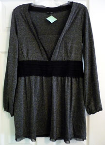 I had worn the jeans several times before, but last night was the first time I wore the shirt. (I don't go to too many things that call for sparkle.) Both pieces were bought from thrift stores back in August: the jeans were from Salvation Army on 25% off day and the shirt was from Village Thrift on 50% off day. The total cost for the outfit: a mere $8.69, pre-tax. Not too bad for an outfit that netted me several compliments throughout the night.