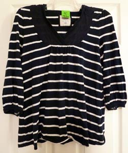 Overall, I enjoyed the B-Thrifty. The store is huge -- I believe my tweet said, "Holy clothing, Batman, this place is enormous!" -- and it's the first thrift store I've seen that actually has as much, if not more, men's clothing as women's. I found many items that were brand new, including the short-sleeve men's polo and the dress I bought, but I was also disappointed to find several significantly stained items as well; in the shoe department, there were like-new dressy high heels next to sneakers that should have been in the trash. So like with most thrift stores, you really need to pay close attention and examine each item.